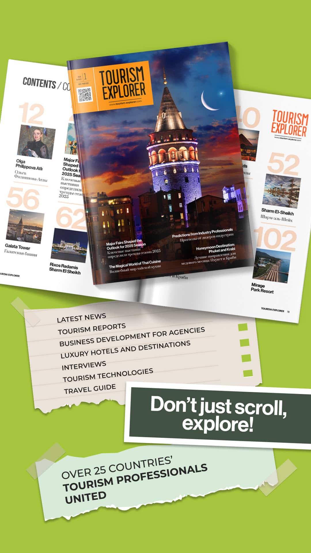 Tourism Explorer, HelloOtel desteğiyle yayınlanan, sadece okuyuculara değil, sektörün profesyonellerine ve karar vericilerine seslenen bir B2B (Business to Business) yayındır. Her sayımızda otellerden acentelere, yatırımcılardan pazarlamacılara kadar sektörün tüm yapı taşlarını buluşturmayı amaçlıyoruz.
